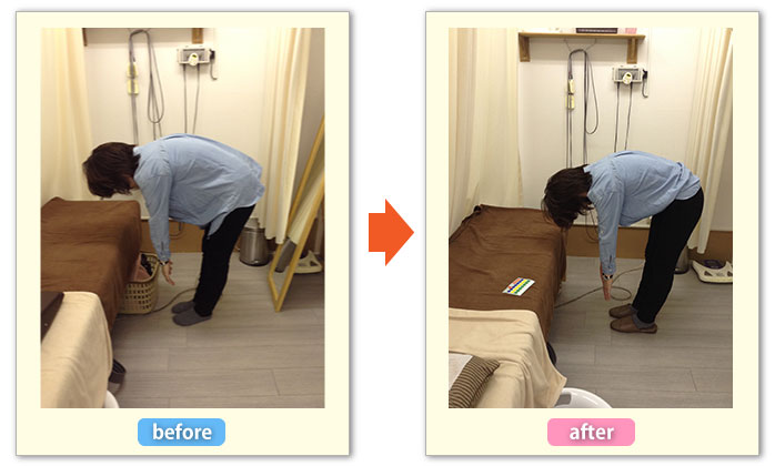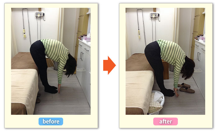 2.骨盤の動きがよくなり前屈の可動域が広がり、指と床との距離が小さくなりました。