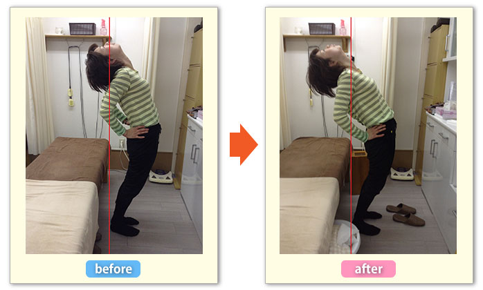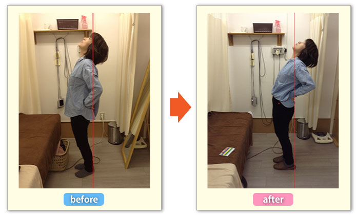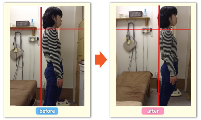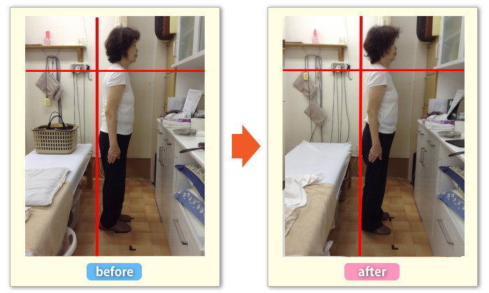 一回の施術で背中の丸みがとれ、かかとから、背中、頭までのラインが一直線につながりました。