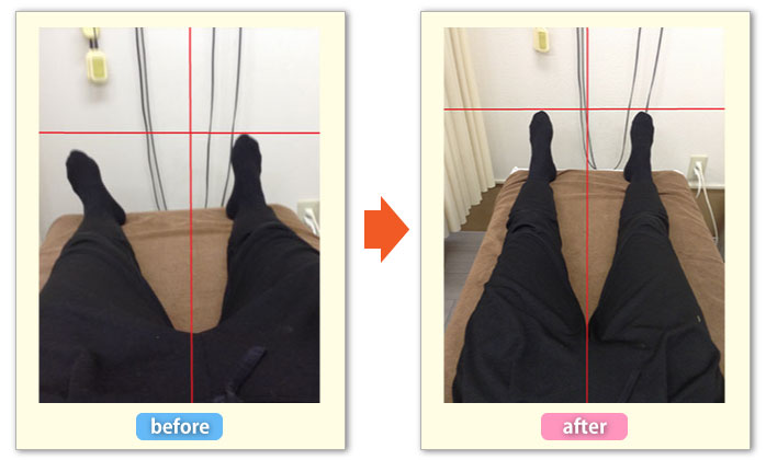指3本弱ほど空いていた膝の間たが、1回でここまで改善しました!