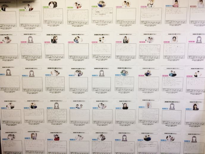 ↑↑こちらは院内に掲示している、ご利用者様より頂いた喜びの声の一部です